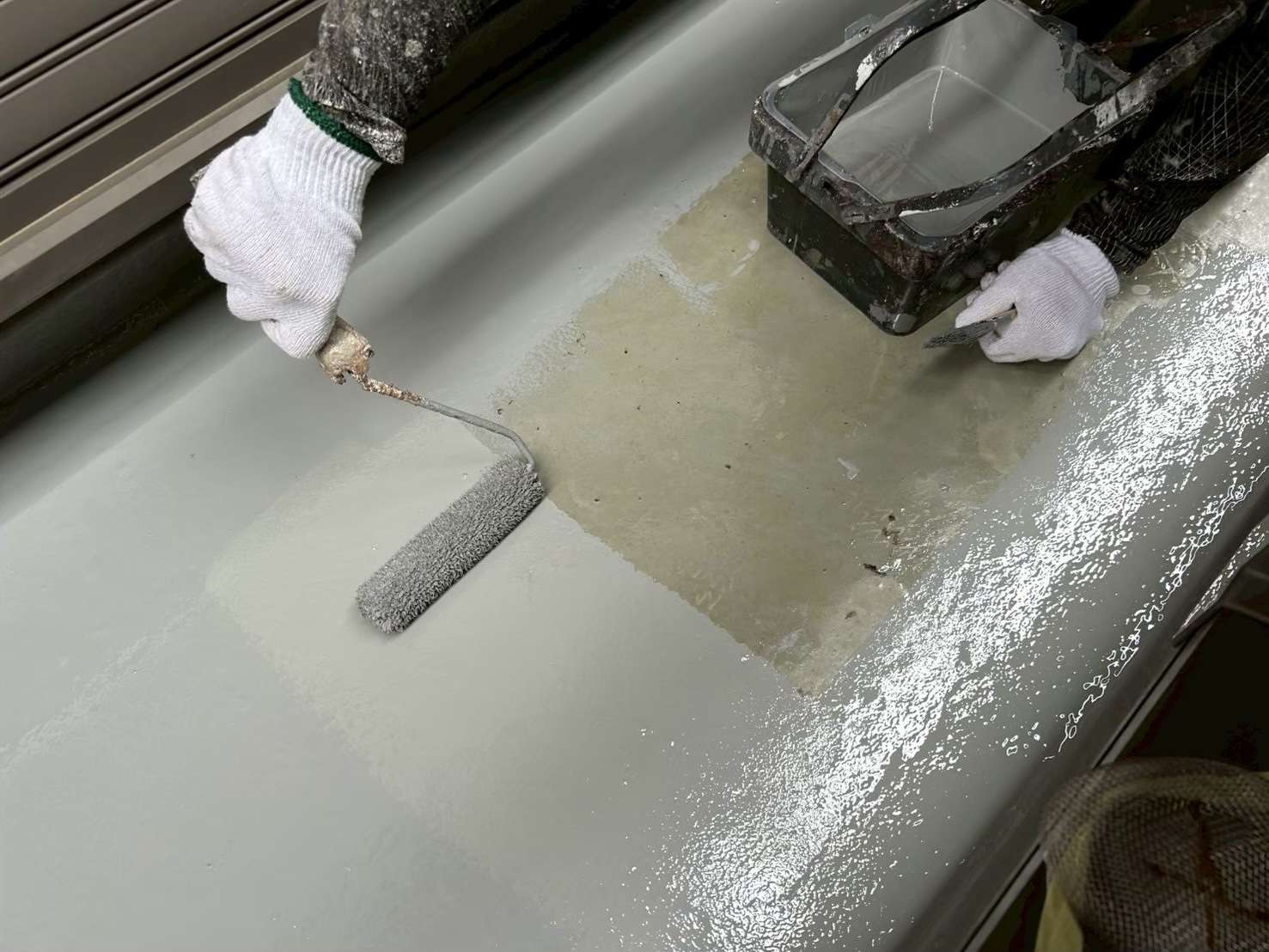 AUコートを塗装しておくと、その後のメンテナンスが格段に楽になります。トップコートの再塗装は5年〜7年ごとを目安に行うのが理想ですが、AUコートなら既存の塗膜の上から塗り直すだけで済むことが多く、既存の防水層をはがす必要がないのです。結果として、工期の短縮や費用の節約につながります。