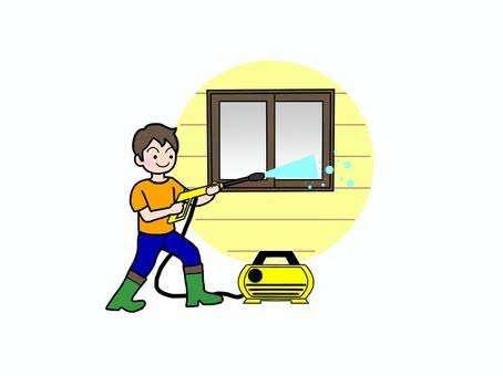 業務用の高圧洗浄機を使い、水圧は10~15MPa程度(家庭用洗浄機の約5倍)。