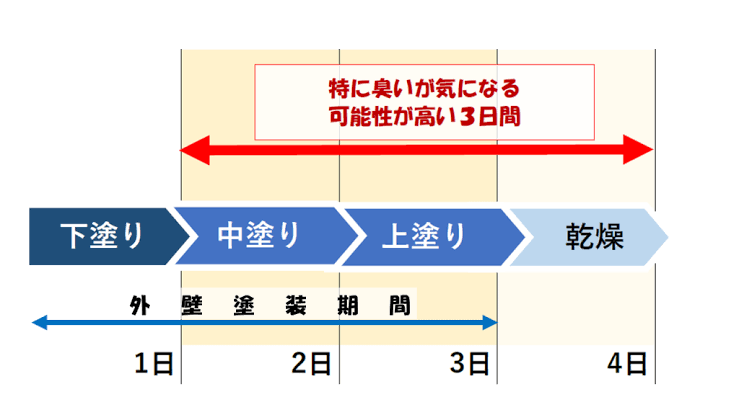 その中でも一番においが気になるのは中塗りと上塗りを塗装する2日間です。