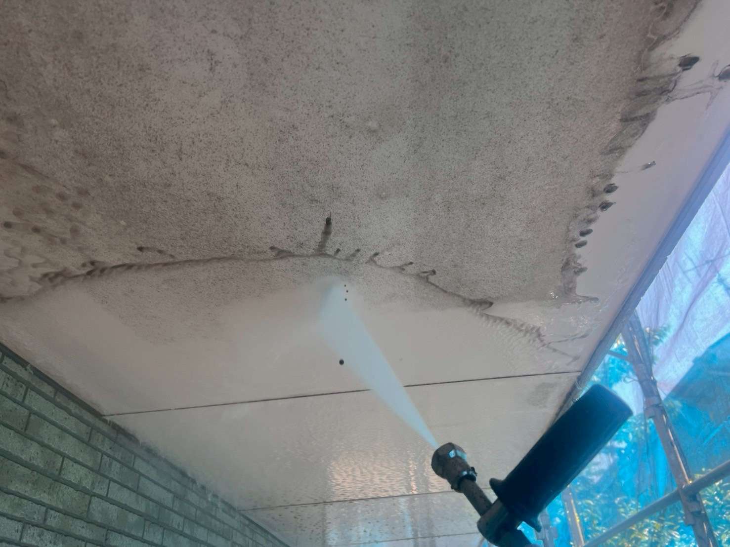 高圧洗浄は塗装工事の大切な第一歩。しっかりと汚れを落とすことで、塗料が長持ちし、美しい仕上がりになります。