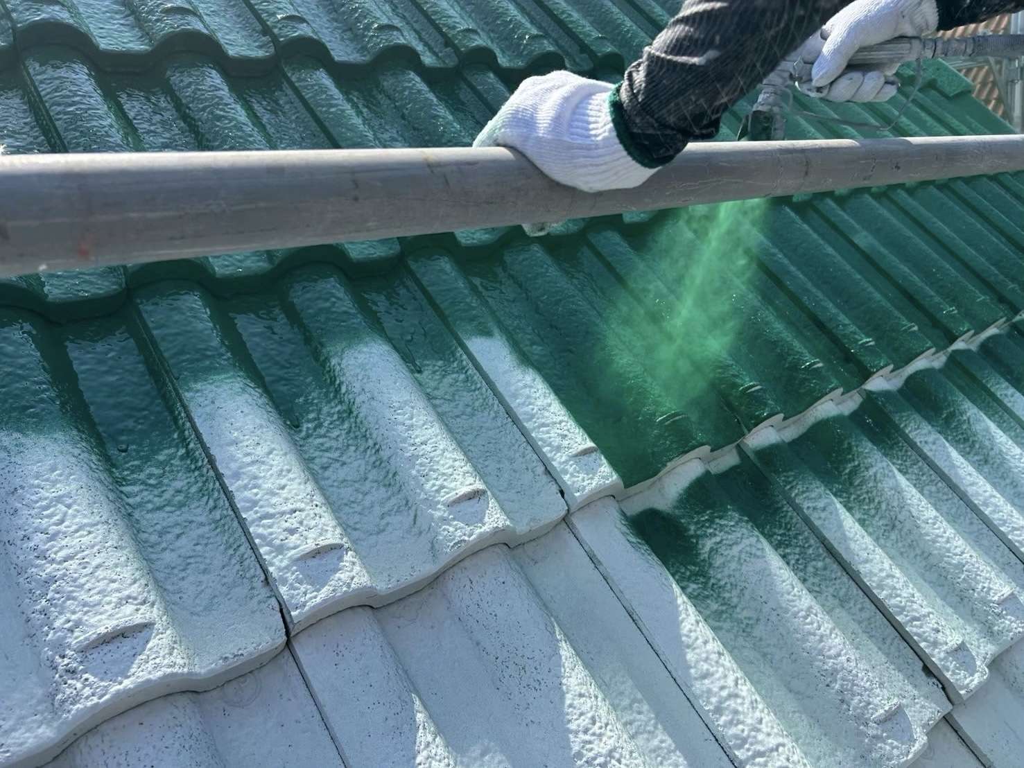 瓦の細部まで塗料が届き、美しい仕上がりが可能