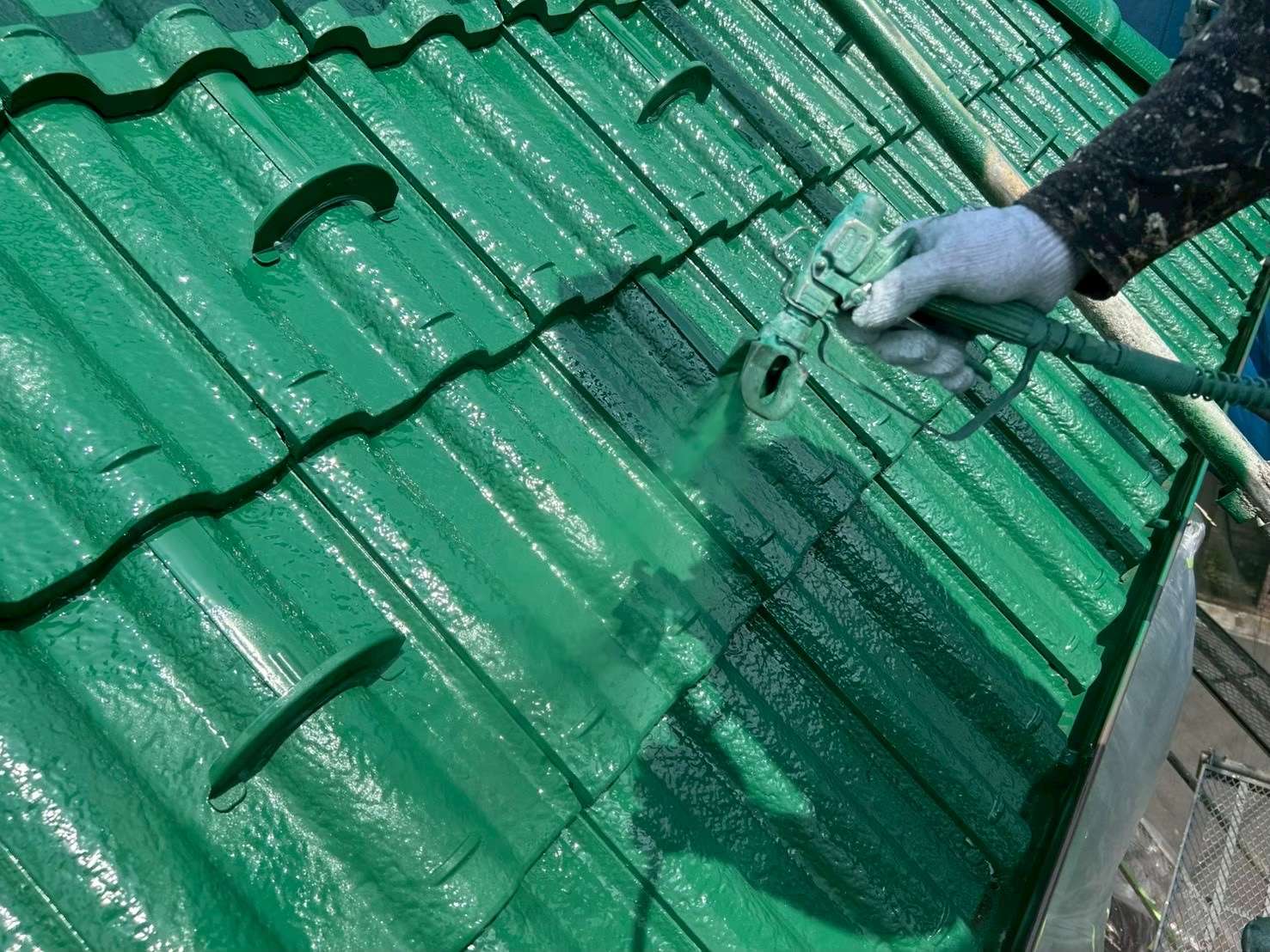 洋瓦の屋根塗装には、スプレーガンを使った吹き付け塗装が非常に効果的です。