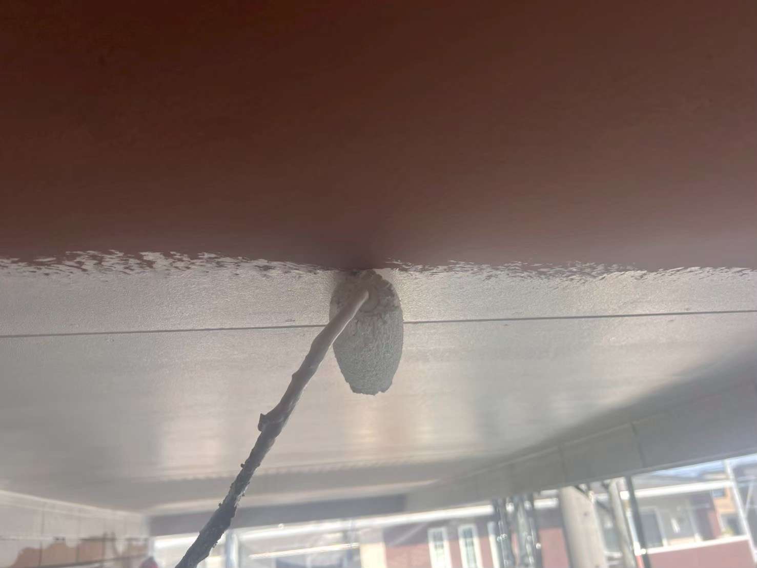 今回は、軒天井の塗装作業風景をご紹介いたします。