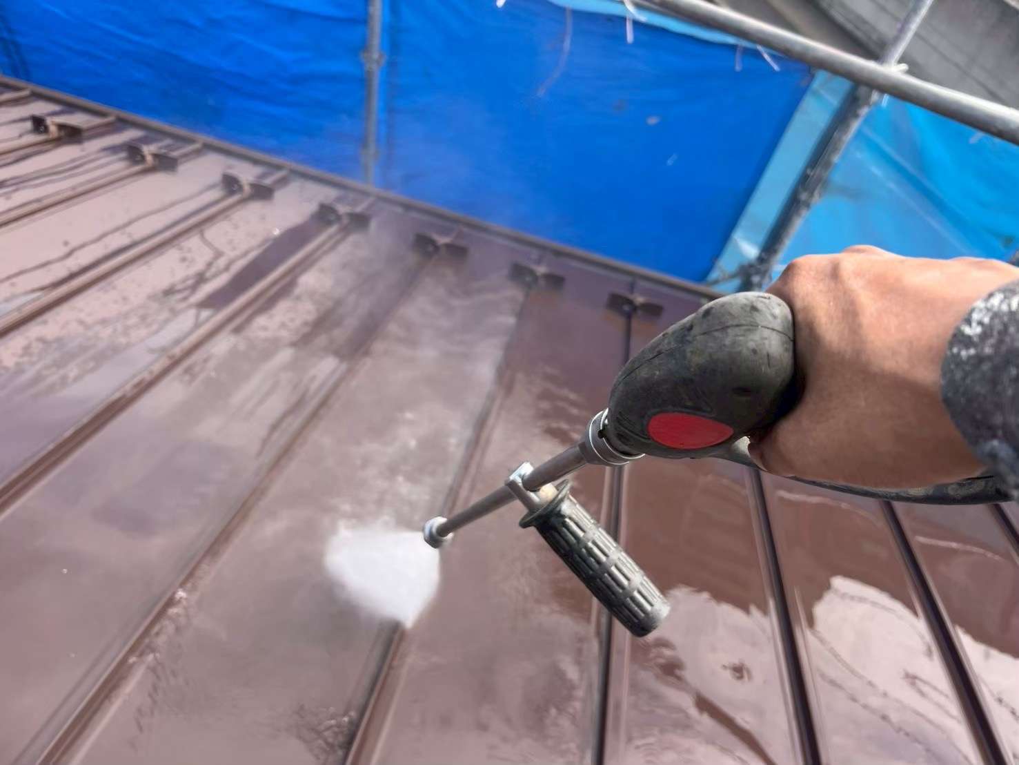 こちらも同様に、洗浄時の角度や距離を調整しながら、安全に作業を行っております。