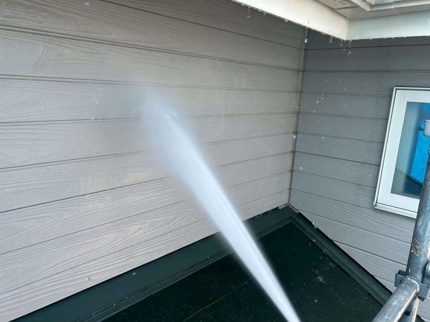 また、窓枠やコーキング部分は水圧を弱め、ノズルを少し離して当てるなど、**“壊さないための技術”**が求められます。