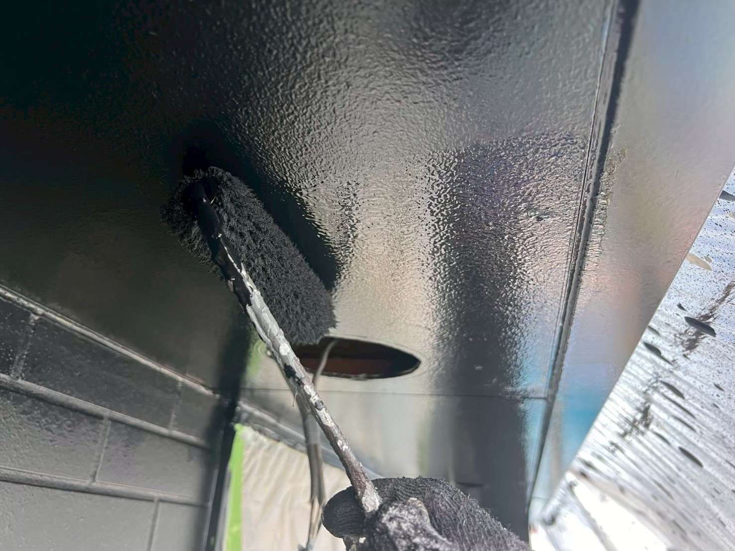 今回は、前回ご紹介した外壁と同じ色で軒天井の塗装風景をご紹介いたします。