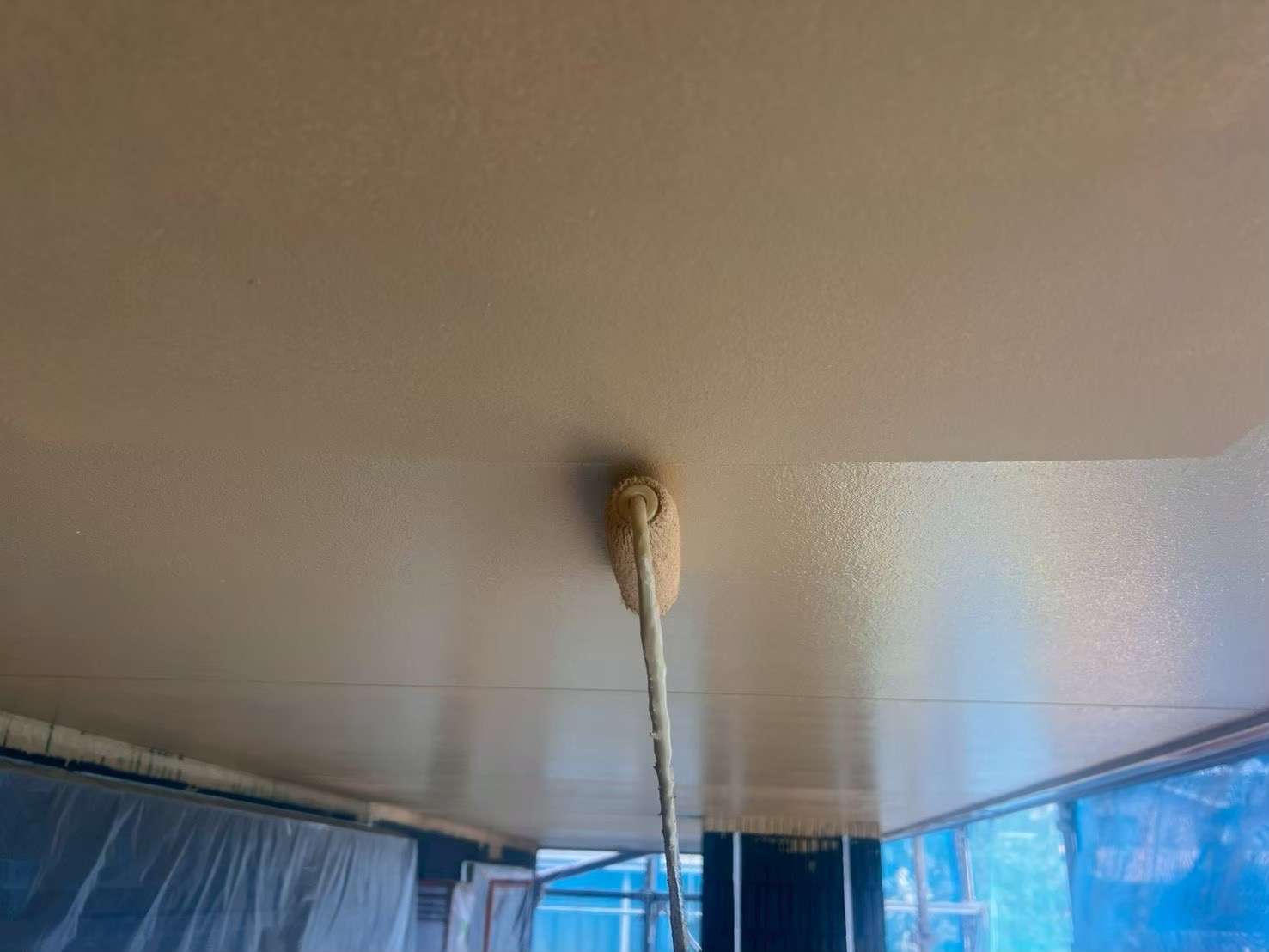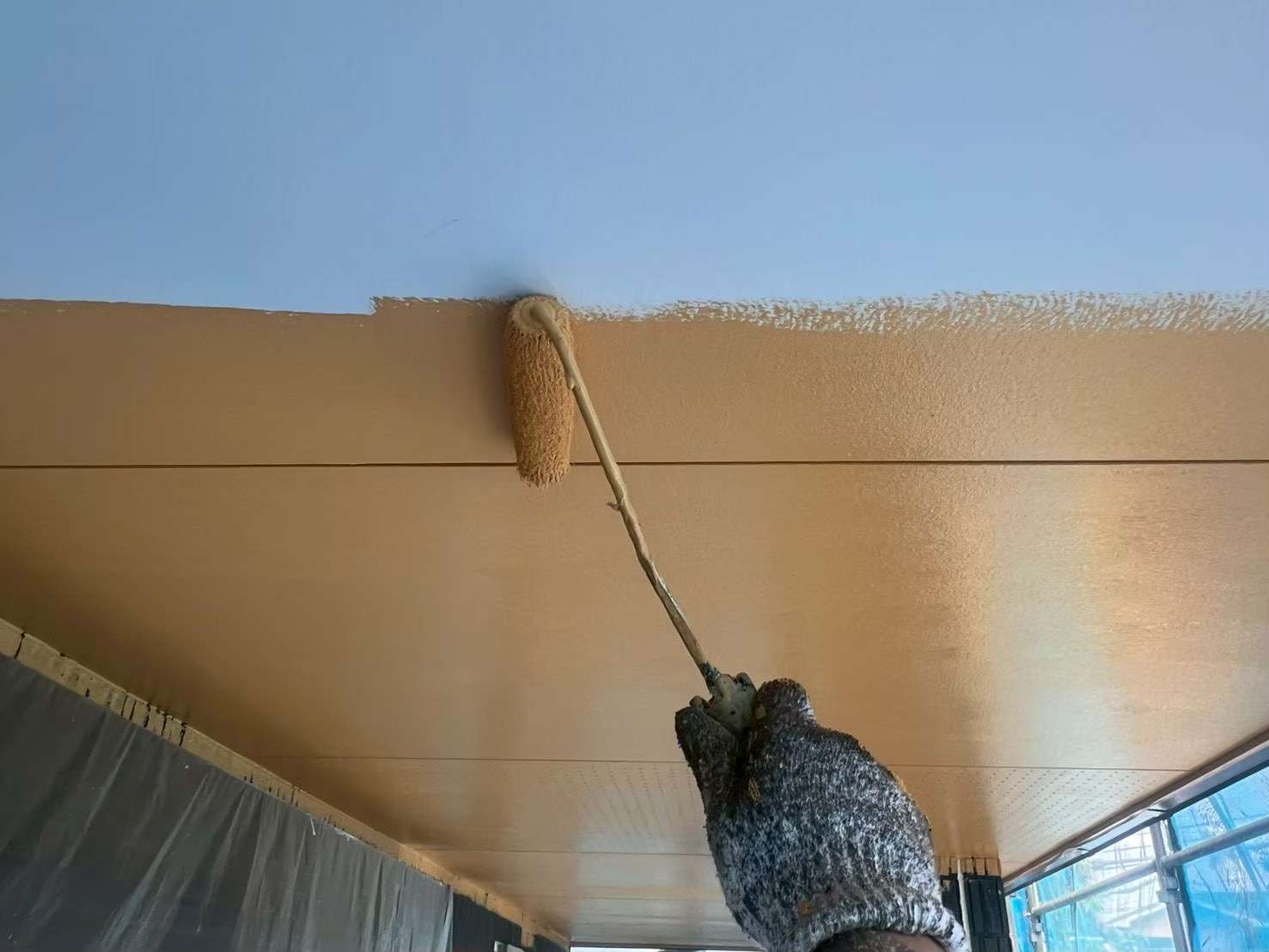 今回は、軒天井の塗装作業風景をご紹介いたします。