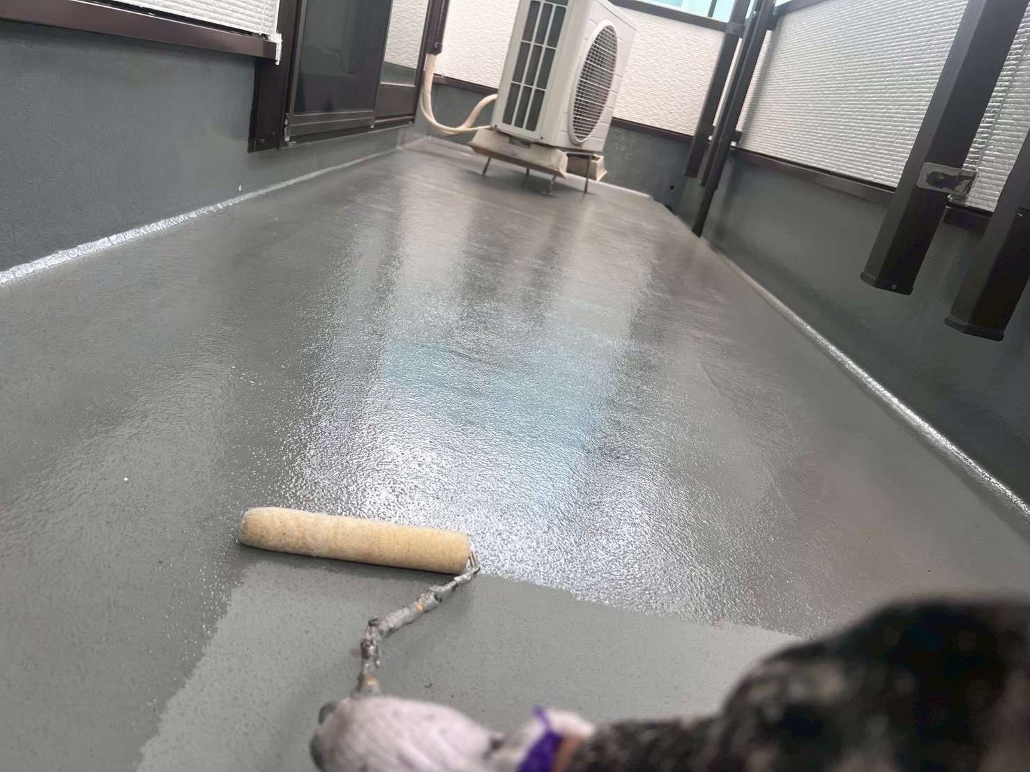 K様邸の最後の塗装作業は、ベランダ床の防水塗装作業風景をご紹介いたします。