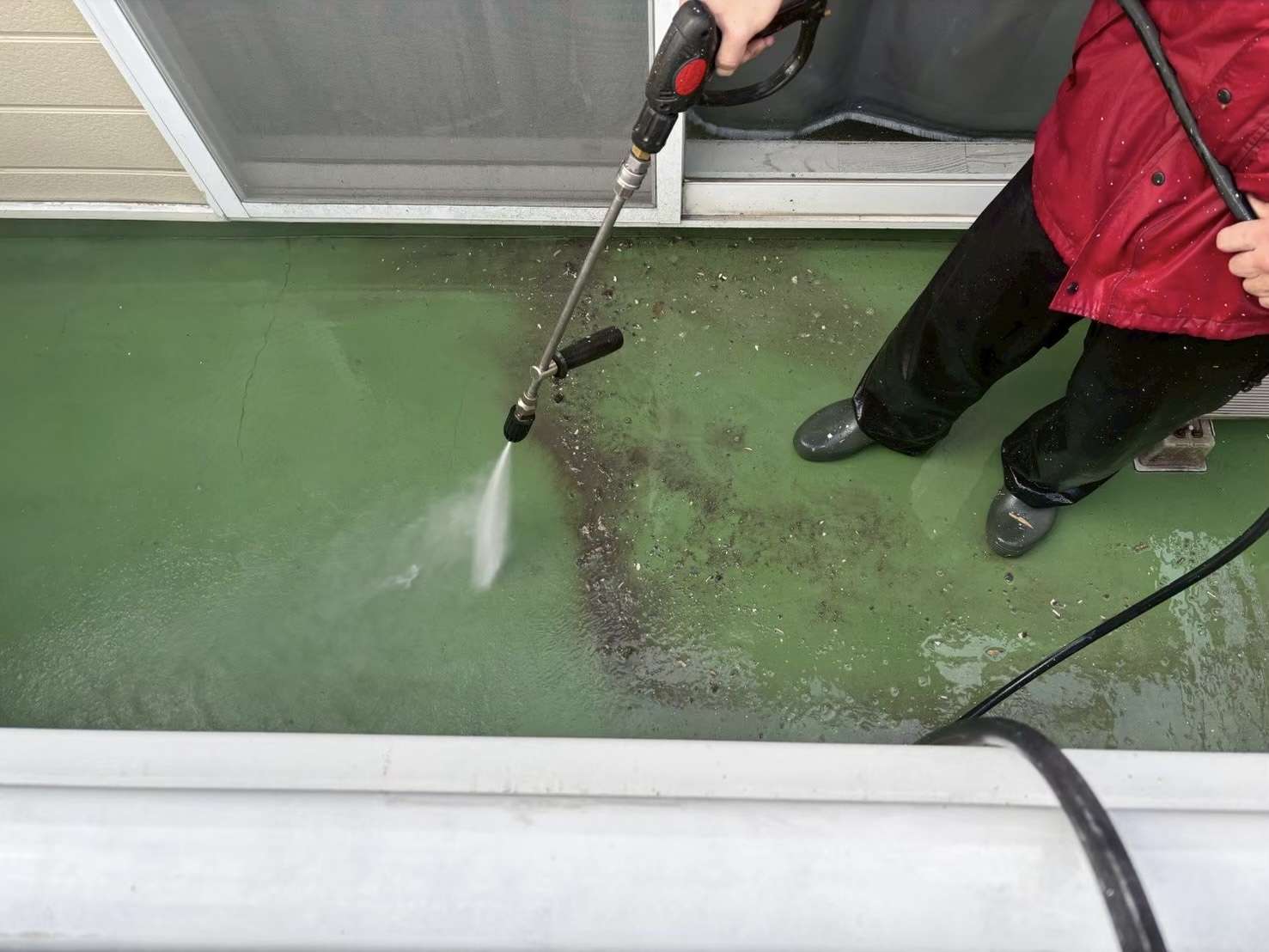 最初に行うのが高圧洗浄作業です。