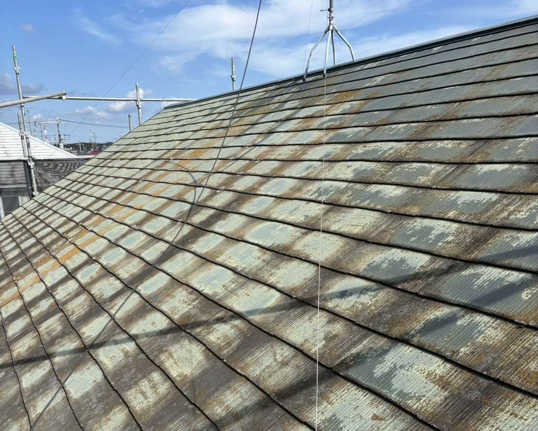 特にコロニアル屋根は、年数が経つとコケ・藻・汚れが付着しやすく、そのまま塗装してしまうと塗料がしっかり密着しません。