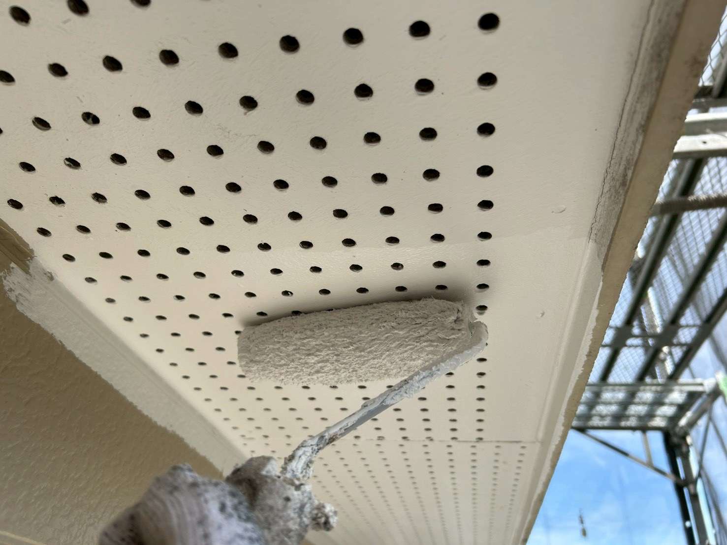 軒天井塗装でも、下地処理は非常に重要です。