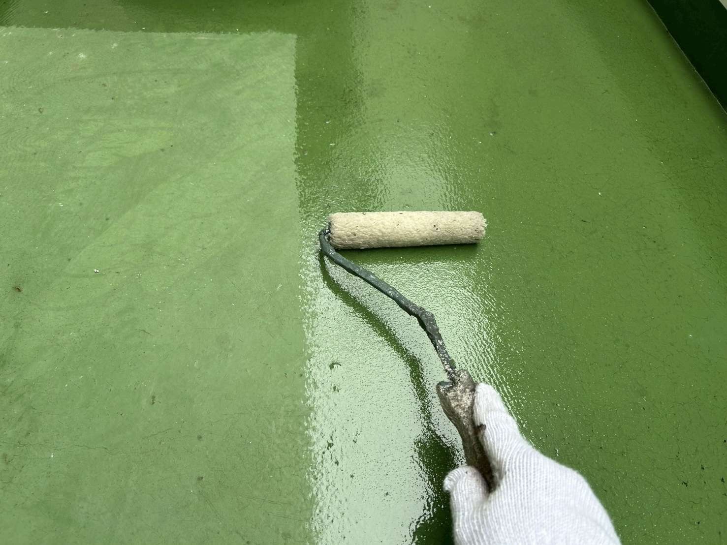 ウレタン防水層がしっかり硬化したら、最後にトップコートを塗布します。