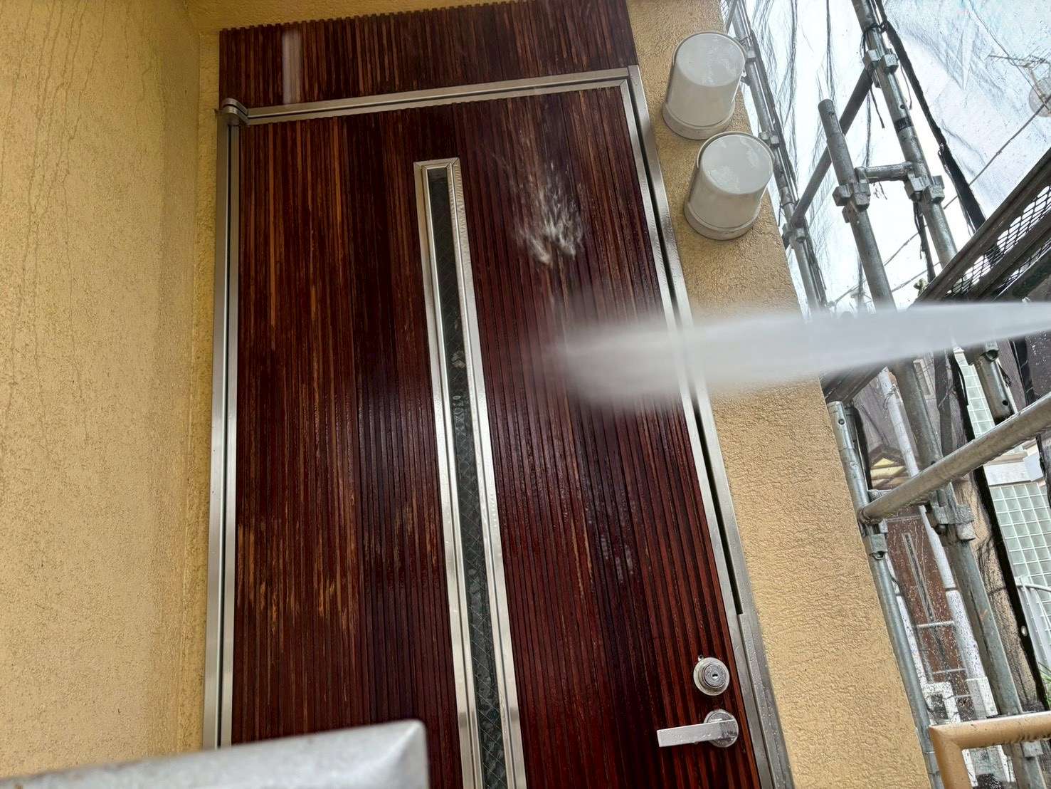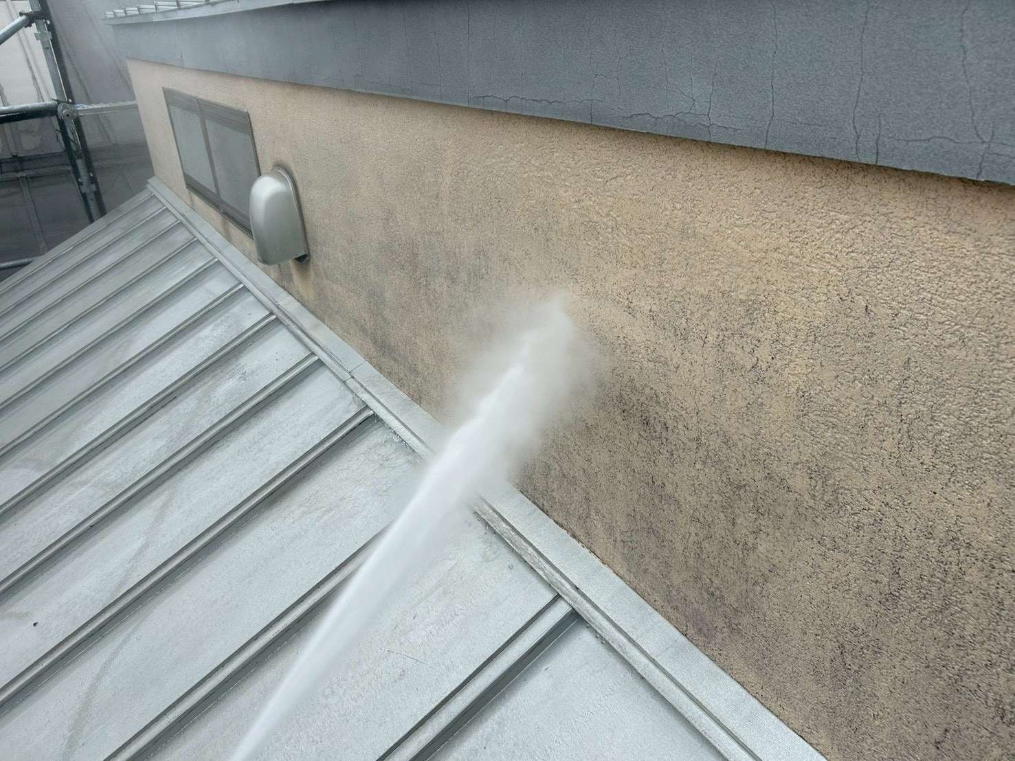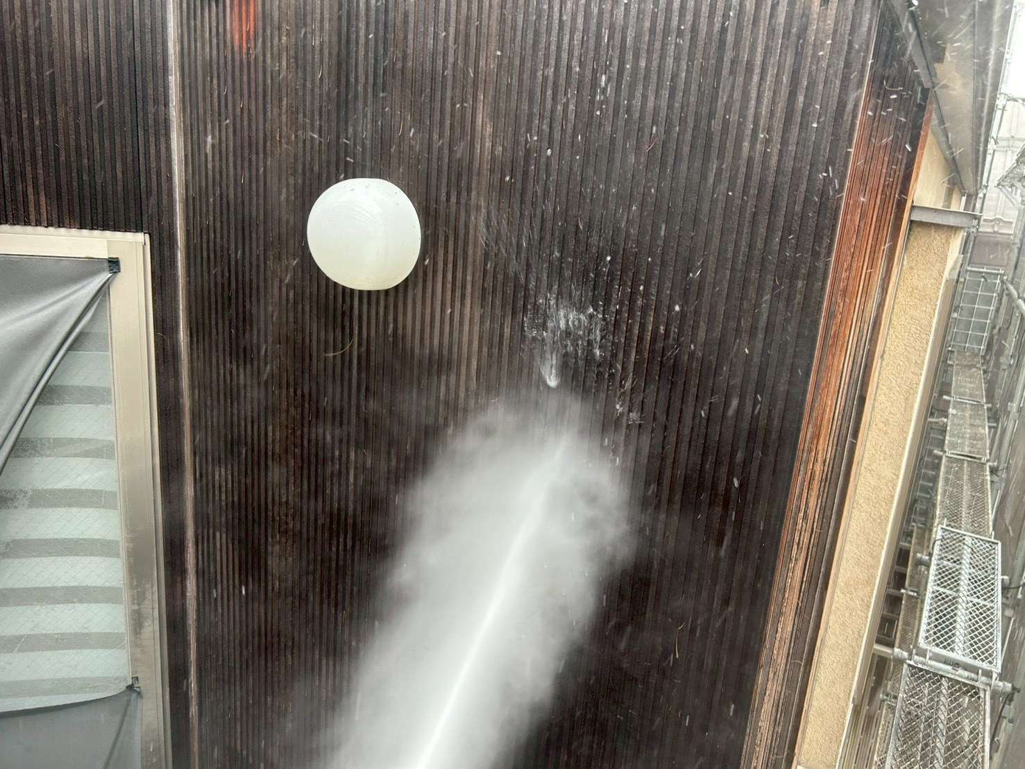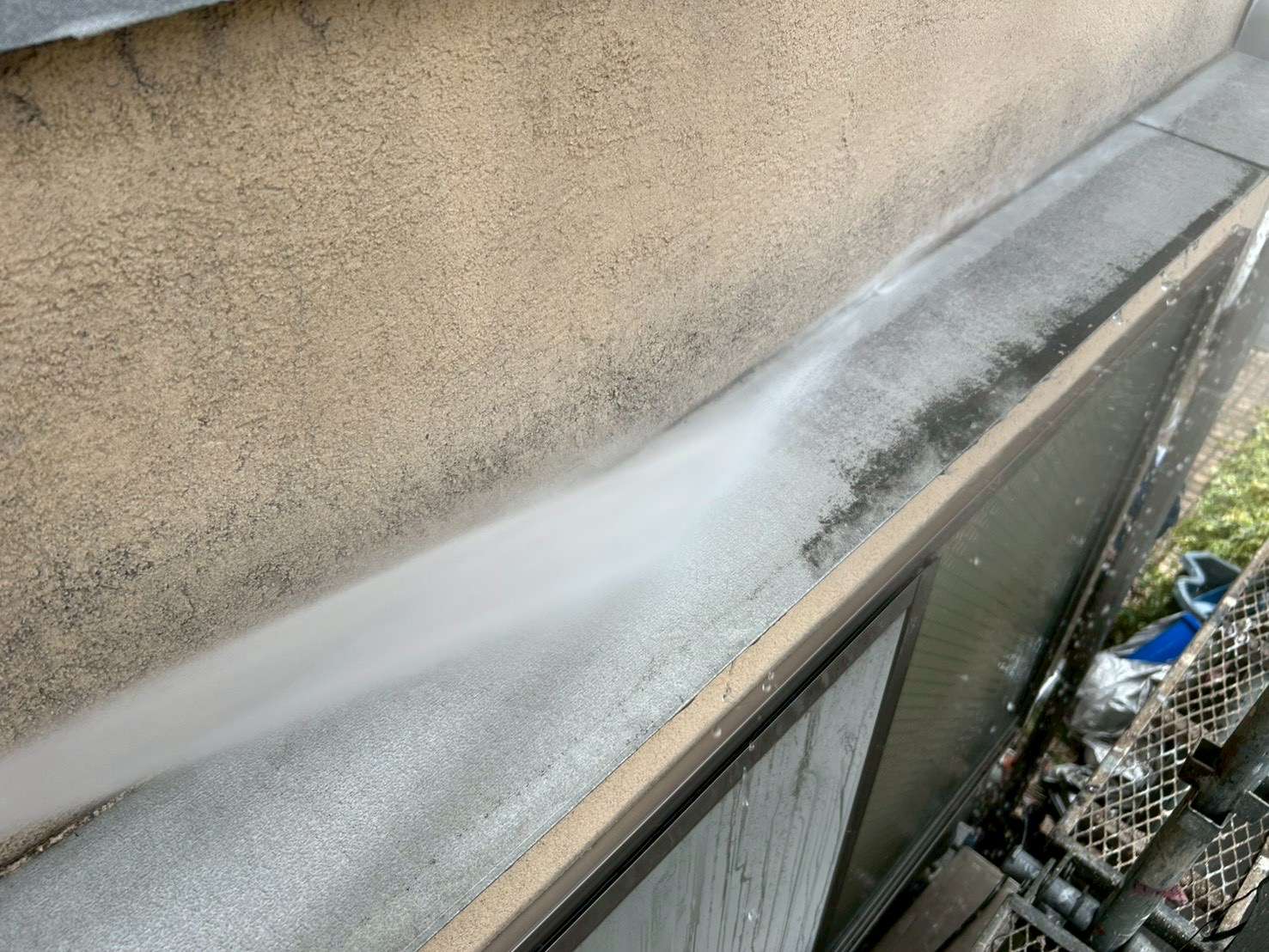 隣家に近い面から先に洗い、飛散しやすい場所は特に慎重に進めます。